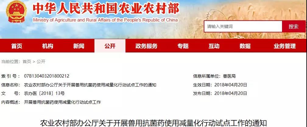 另外,農(nóng)業(yè)農(nóng)村部在近期發(fā)布了《農(nóng)業(yè)農(nóng)村部辦公廳關(guān)于開展獸用抗菌藥使用減量化行動(dòng)試點(diǎn)工作的通知》。農(nóng)業(yè)農(nóng)村部決定開展獸用抗菌藥使用減量化行動(dòng),組織制定了《獸用抗菌藥使用減量化行動(dòng)試點(diǎn)工作方案(2018—2021年)》(以下簡稱“方案”),確定了各地2018年獸用抗菌藥使用減量化行動(dòng)試點(diǎn)養(yǎng)殖場數(shù)量。
