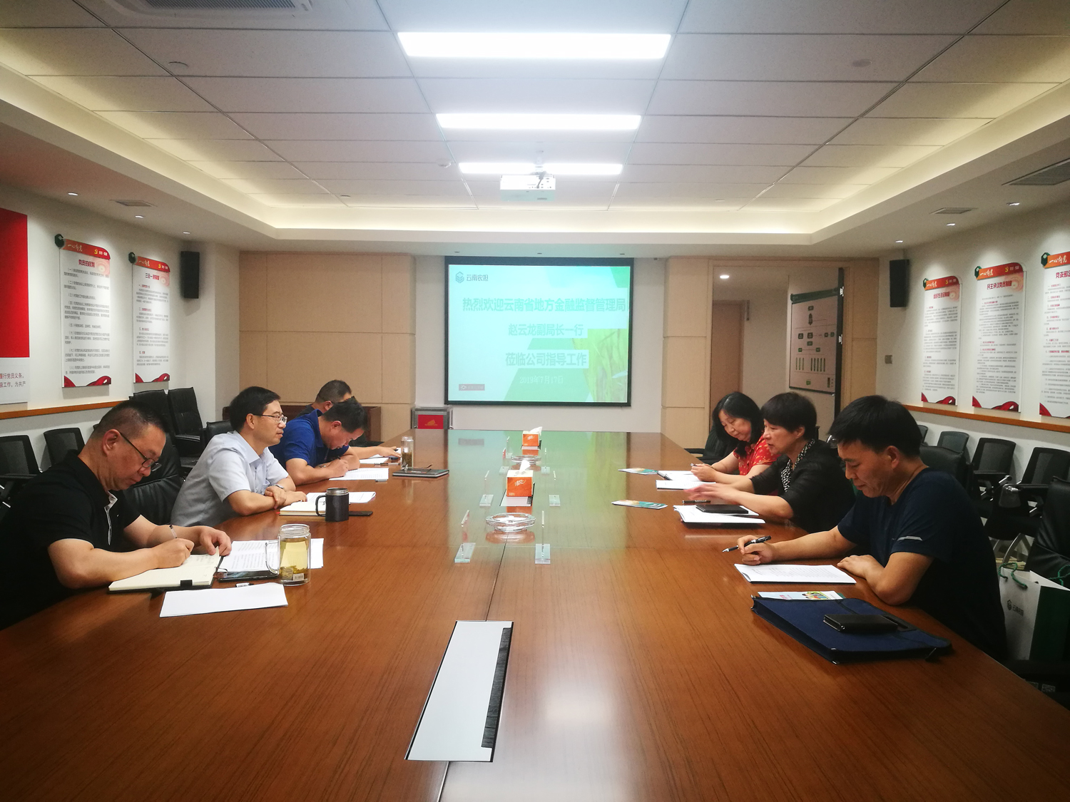 7月17日,云南省地方金融監(jiān)督管理局趙云龍副局長(zhǎng)一行到云南省農(nóng)擔(dān)公司進(jìn)行調(diào)研座談,省農(nóng)擔(dān)公司郭影董事長(zhǎng)、杜開(kāi)波總經(jīng)理、廖寅皓副總經(jīng)理及相關(guān)業(yè)務(wù)部門(mén)參加了會(huì)議。雙方圍繞公司擔(dān)保業(yè)務(wù)工作的開(kāi)展情況進(jìn)行座談。