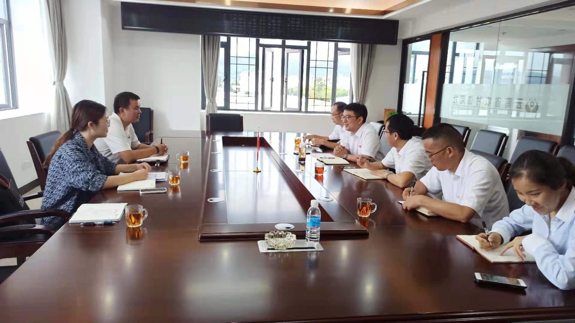 2021年9月8日,業(yè)務(wù)發(fā)展部副經(jīng)理寸明杰帶領(lǐng)保山辦事處副主任胡幫露、項目經(jīng)理竇云云到施甸農(nóng)商行開展業(yè)務(wù)座談,施甸農(nóng)商行董事長席建飛、行長楊慶龍、業(yè)務(wù)發(fā)展部經(jīng)理李頌堂、信貸部經(jīng)理岳忠艷、風(fēng)險部經(jīng)理楊開華參加會議。