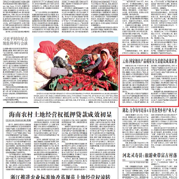 國家級(jí)農(nóng)產(chǎn)品質(zhì)量安全縣建設(shè)成效顯著!《農(nóng)民日?qǐng)?bào)》刊文點(diǎn)贊云南
